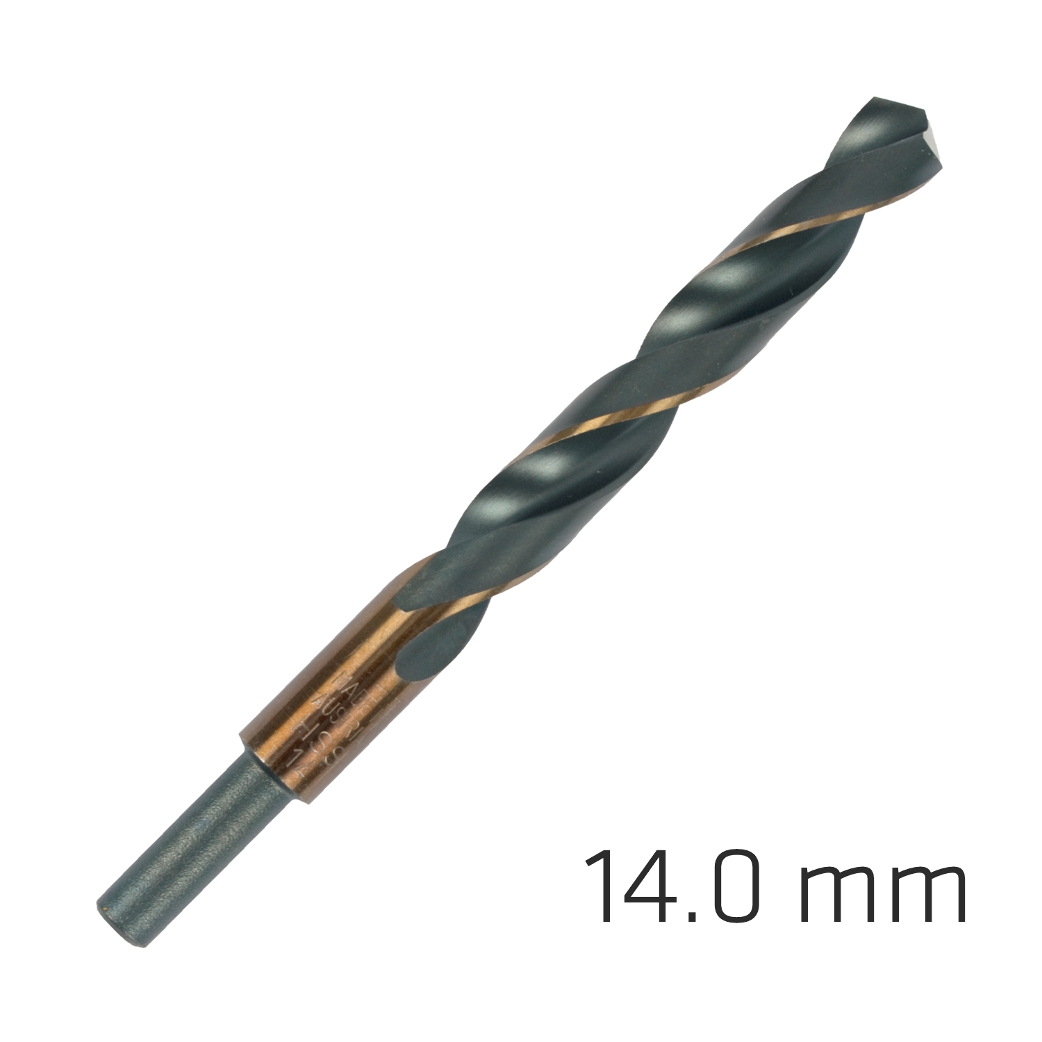 HSS twist drill: Reduced shank for convenience, toughness and precision combined with excellent cutting efficiency for drilling alloyed carbon and plain steel. Ideal for hand held operations.