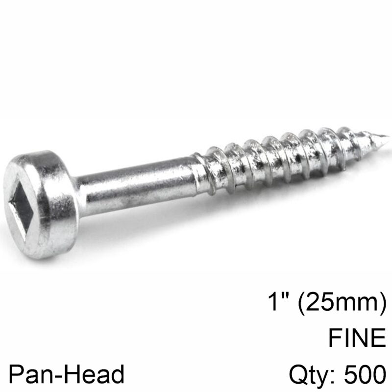 Zinc Pocket-Hole Screws: Pan-Head 1′ (25mm) Fine thread Qty:500