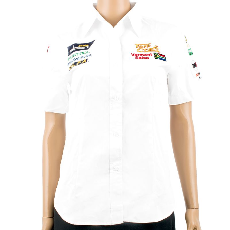 A smart white ladies blouse with three-quarter sleeves and subtle Tork Craft branding. Designed for a neat, professional look on site visits, trade events, or showroom days while remaining comfortable enough for everyday wear.