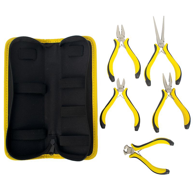 detailed projects. This compact set includes five essential micro pliers, each crafted from durable carbon steel to