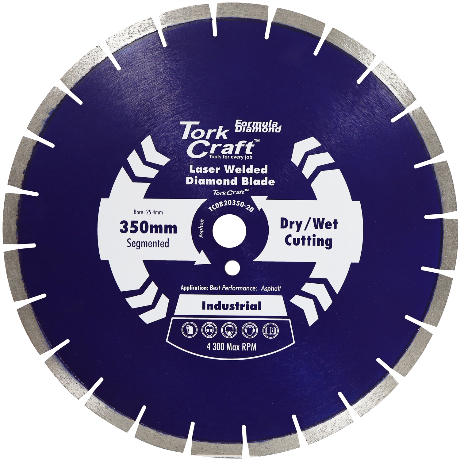 This 350 mm diameter diamond blade from Tork Craft features a laser-welded segmented rim engineered specifically for cutting asphalt and tar. The large diameter offers deep cut capacity while the laser-weld bond ensures durability in harsh, abrasive conditions. Ideal for road cutting, utility access, patching and general asphalt work.