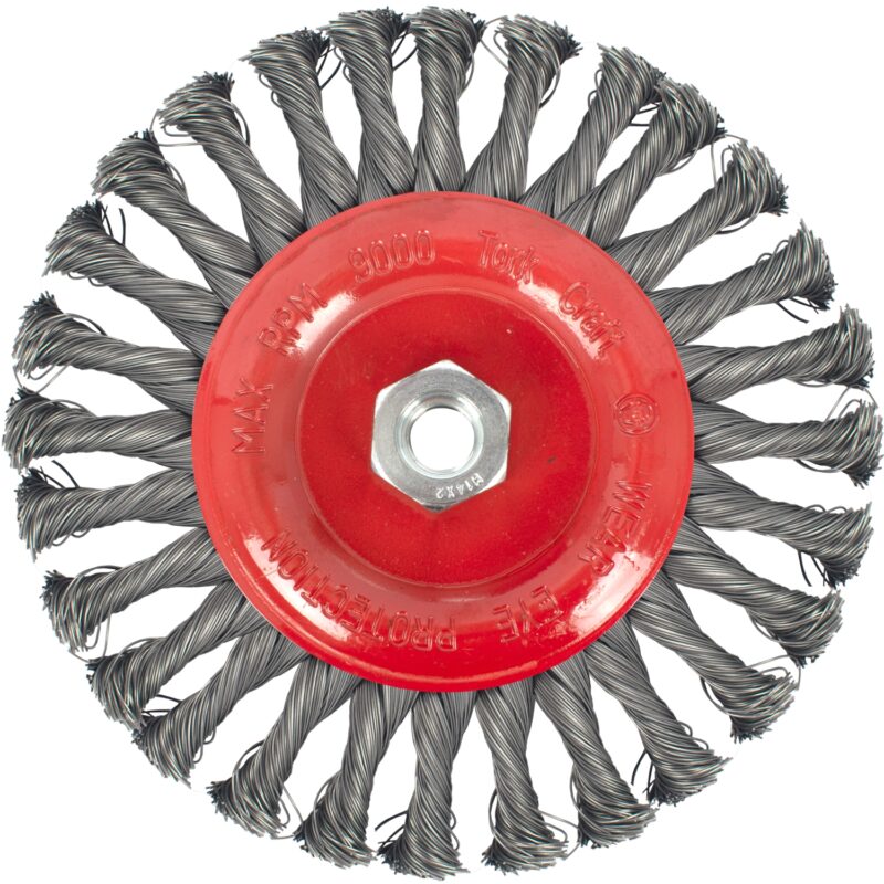 At a Glance: 175 mm twisted-wire wheel brush for aggressive cleaning and surface preparation on large metal parts and surfaces
